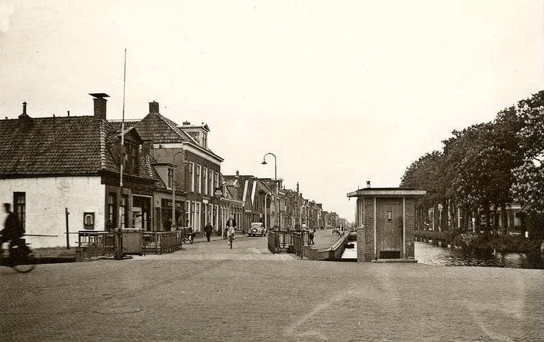 Brugwachter-schoenmaker Gjalt Keimpema is met pensioen, maar hij mag wel op Heerenwal 1 blijven wonen. Dat ‘lytse húske’ staat spijtig genoeg niet op deze foto, maar op Hip-Time 29 heeft U daar al kennis mee gemaakt. Na Keimpema’s vertrek naar Franeker in april 1950 en die van zijn huishoudster Wemke Prakken op 13 oktober 1951 naar Oudehorne wordt het huisje afgebroken. Als brugfunctionaris pacht de 54 jarige A.J. Elsinga, oud-varensgezel, de inning van de bruggelden van de nieuwe brug met ingang van 5 juli 1935 voor de periode tot 1 januari 1938. Hij krijgt daarvoor o.a. een instructie van 11 artikelen (dossier 315.1 van het secretarie-archief). Het te heffen tarief voor een doorvaart mag 10 cent bedragen.