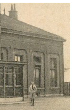 Nu - vele jaren later - beseffen we dat de afbeelding is genomen voor de noordelijke helft van het stationsgebouw. Een detail van een prentbriefkaart uit die periode geeft ons de zekerheid door vergelijking van de architectonische vorm van de raamnissen en de plaats van de muurankers. Een medewerker van het museum heeft deze opname van J.M. Visser in het fotoarchief ingevoerd en daaraan als bijschrift op de achterkant van fotokaart nr. 07105 in algemene termen toegevoegd: “Aankomst Sint Nicolaas bij ‘t Spoor. Voor de 1e keer in haar bestaan organiseerde de H’veense Winkeliersvereniging Sinterklaasfeesten. Foto Sint bij intocht bij het station vergezeld van de heer Fokke Groen. De schimmels afkomstig van Bauke Woudstra uit Brongerga, en vroeger eigendom geweest van burgemeester H.W. de Blocq van Scheltinga van Schoterland. 29 nov. 1919.”