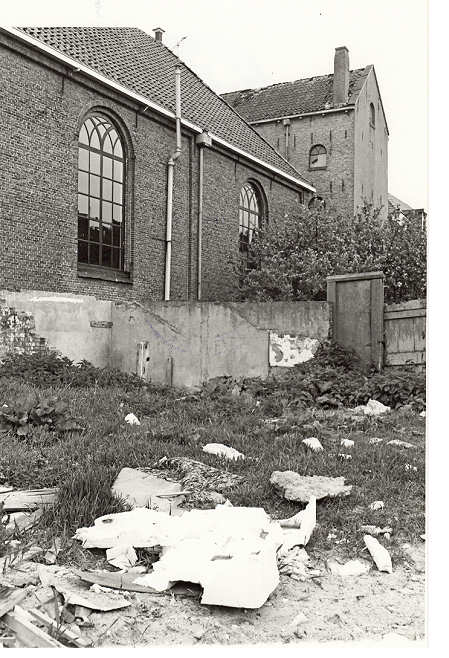 Tja ... en dan valt deze foto ook in de categorie ‘documentaire fotografie’ met als onderwerp ‘Kaalslag van de zeventiger jaren’. De deplorabele restanten van het huis met Kerkstraat nr. 30 en vermoedelijk ook nr. 28. Op de woningkaart van beide panden staat “afgebroken volgens GW 5-1-1972”, waarbij GW moet worden vertaald als ‘Gemeentewerken’. De rooilijn, waar we eerder over spraken, situeert nr. 30 aan de westkant van die lijn en dus nr. 28 nog verder westwaarts. De voorlaatste bewoners van Kerkstraat 30 blijken de heer en mevrouw Fokke Joustra, die op 11 maart 1964 een pas gebouwde flat gaan bewonen aan de Coehoorn van Scheltingaweg. Fokke Joustra is meesterknecht geweest bij de veer-en kapokfabriek (Borkent) en komt al voor op dit adres in het adresboekje van 1934. Dan woont hij er al enkele jaren. Joustra heeft in de Heerenveense dorpsgemeenschap een goede naam opgebouwd door zijn passie voor de muziek in één van de Heerenveense korpsen. Johannes de Jong en zijn vrouw Akke Hoekstra, die eerder tien jaar ingeschreven hebben gestaan op nr. 28, hebben er vervolgens gewoond. De heer de Jong overlijdt er in maart 1966 en zijn weduwe vertrekt door de voorgenomen afbraak al op 3 mei 1971.