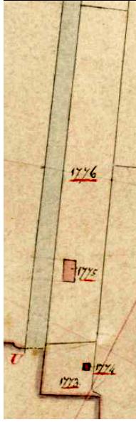 Met behulp van HIS-GIS - de kadastrale kaartensite op internet - wordt duidelijk dat het ‘sluisje’ aan de oostkant wordt begrensd door kadasternummer Tjalleberd A-1776 (legger 396, vlg.nr. 15, eig. de Pastorij van Aengwirden). Het wordt aangeduid als ‘weiland’ met een grootte van 47.80 are. Op dat perceel vinden onder A-1775 (legger 396.14) een - dus al langer bestaand - huis op een perceel van 0.84 are. We mogen aannemen, dat daaruit het latere ‘sluiswachtershuis’ is ontstaan. Dat klopt ook want uit 396.14 én 396.15 ontstaat 396.410 met als perceelsomschrijving ‘sluiswachterswoning met erf’.  Daarvoor is in het dienstjaar 1868 een nieuw kadasternummer toegekend: A-3553, met een perceelgrootte van 7.24 are en een gebouwde waarde van het huis van fl.40,-. De ‘tuingrond’ met een grootte van 8.40 are - waar de Postfamilie haar tuinmanschap bedrijft - heeft het nieuwe kadasternummer A-3554 toegekend gekregen.