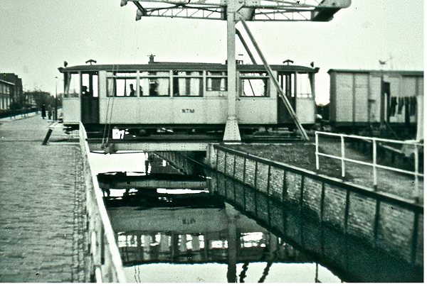 Als ‘uitsmijter’ en tevens als ‘bekroning’ van deze aflevering willen we U graag het als gevaarlijk bekend staande kruispunt laten zien, waar een NTM-tramstel de trambrug het sluisje in de Pastoriewijk en de Pastorielaan kruist om bij de ‘opstapplaats’ tussen Heideburen en Pastoriedwarsstraat haar passagiers te kunnen gerieven.
