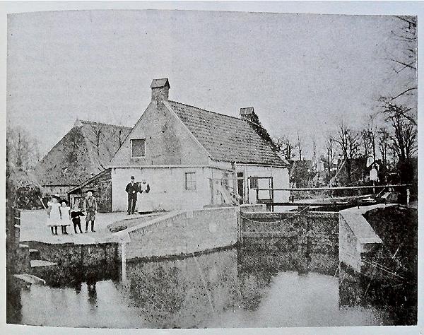 Fotobijschrift: De stichting Oudheidkamer Heerenveen brengt in 1978 het fotoboekje ‘Een wandeling door Oud-Heerenveen’ uit. Op bladzijde 77 schrijft samensteller Douwe Miedema, dat de foto van deze sluiswachterswoning uit het begin van de eeuw dateert. De grote schuur links behoort tot ‘Voormeerszathe’ en rechts zien we de achterkanten van het laatste strookje huizen van de Heideburen.