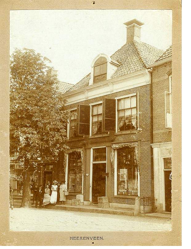Opnieuw zo’n ‘photografisch’ juweeltje uit de collectie van het Museum Heerenveen. ‘Photograaf ‘Hendrik Johannes Craye Az. uit Leeuwarden reist omstreeks 1900 naar ‘Heerenveen’ om deze foto te maken. Vermoedelijk een opdracht van de exploitant van deze winkel aan de Vleeschmarkt. Wie dat is geweest zullen we proberen te achterhalen wanneer we in de geschiedenis van dit pand gaan duiken.