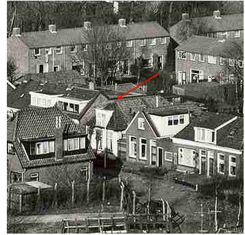 Tenslotte zien we nu op deze vogelvluchtfoto het essentiële verschil tussen de sterk gepersonaliseerde woningen van de Badweg, die onder invloed van ‘eigen bezit’ een geheel eigen ontwikkeling hebben doorgemaakt. Daar tegenover staat de uniforme doorzonwoningen van de Commandeurstraat, die aangelegd zijn door de Bouwvereniging en waar weinig speelruimte voor de bewoners is toegestaan om serres aan te bouwen of dakkapellen te construeren. De straat wordt aangelegd in 1955/1956 en de huizenblokken verschijnen uiteraard in de jaren daarna.