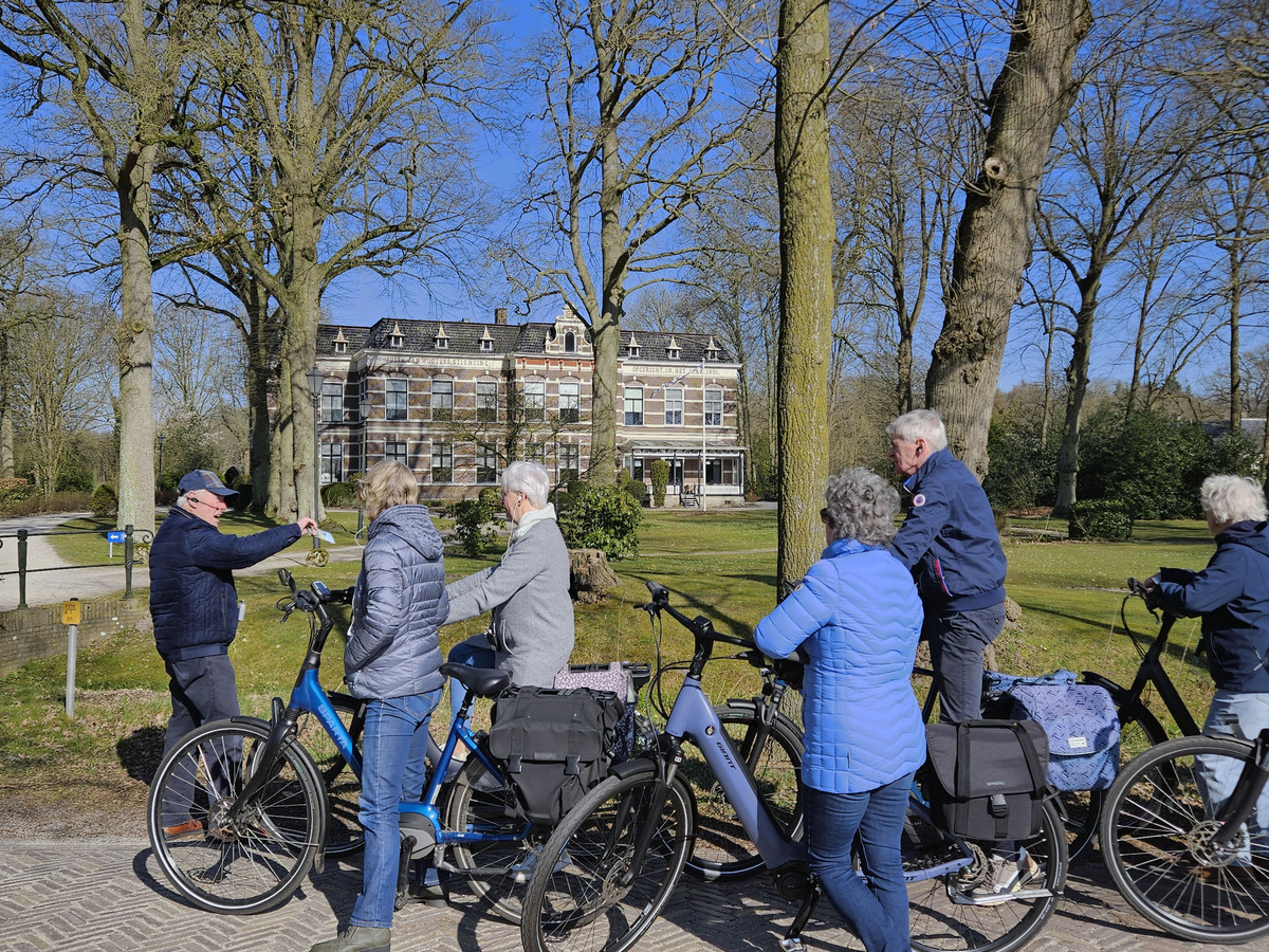 Onder een stralende zon was er zaterdag 22 maart 2025 een bijzondere historische fietstocht door Oranjewoud en Oudeschoot, onder de bezielende leiding van gids Gerard van der Werf. Start en eindpunt was Parkhotel Tjaarda en de tocht ging langs de vele bezienswaardigheden zoals de Skoatter Tsjerke, voormalige gemeentehuis De Drie Pilaren, Huize Veenwijk , de Joodse Begraafplaats, het beeldhouwwerk van Anne Woudwijk.